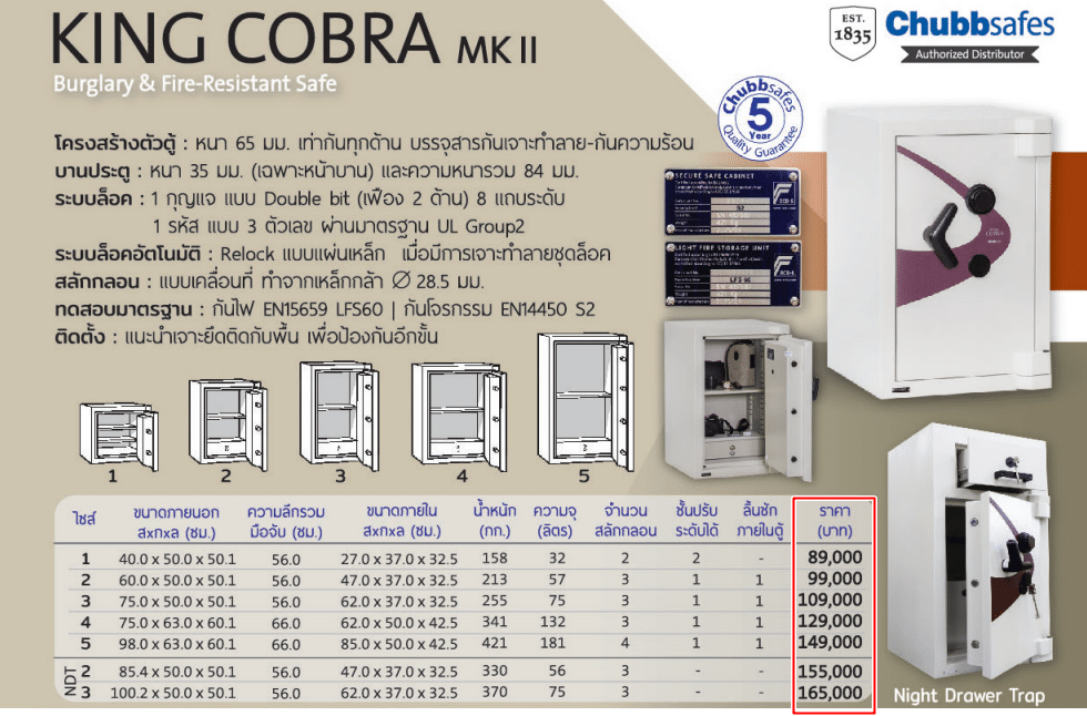บริษัท ไมนิคส์ คอมมิวนิเคชั่น จำกัด ผู้นำด้านจำหน่ายและติดตั้ง ตู้เซฟนิรภัย ขอนแก่น คุณภาพสูงจากแบรนด์ชั้นนำระดับโลก ชับบ์เชฟ (Chubbsafes) ที่ได้รับการยอมรับทั่วโลก ด้วยระบบล็อคทันสมัย ปลอดภัย และแข็งแรงทนทาน พร้อมทีมงานมืออาชีพกว่า 28 ปี ที่ดูแลคุณตั้งแต่คำปรึกษา จนถึงบริการหลังการขาย